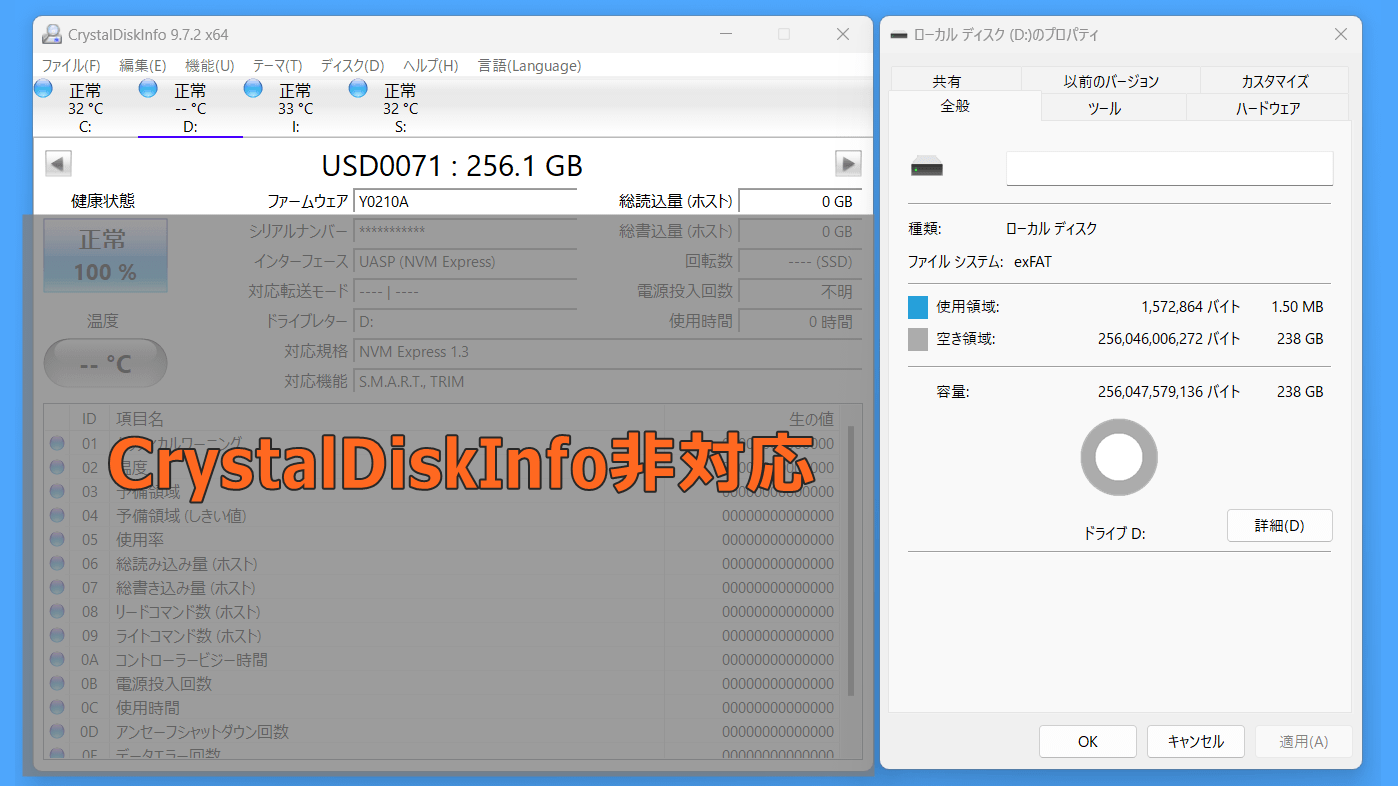 SD Expressカードリーダーを使用した時にS.M.A.R.Tの健康状態を確認できるかどうかは組み合わせて使用するカードリーダーの仕様やCrystalDiskInfoのソフトウェア対応次第です。