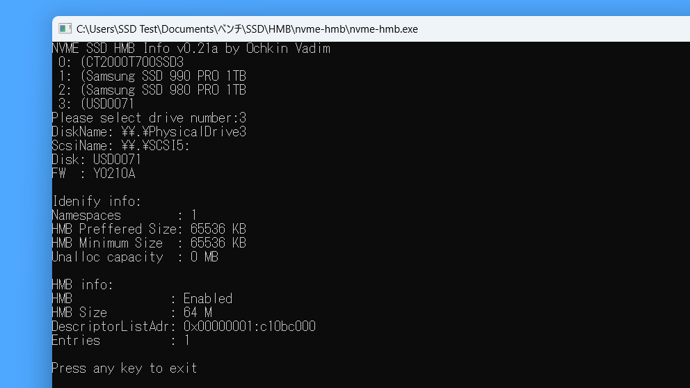 Switch 2で使用した時にどうなるかは分かりませんが、M.2変換ボードを介してPC上で使用した場合、HMB(Host Memory Buffer)に対応していました。