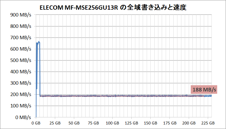 - SLCキャッシュ容量はフォーマット直後で5GB、その後は固定容量 500MB?