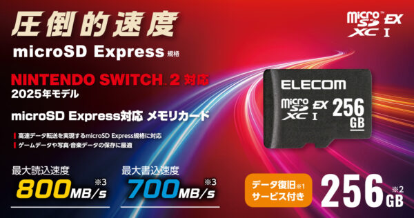 国内のPC周辺機器メーカーとして有名なELECOM(エレコム)から発売中、Nintendo Switch 2の拡張ストレージとしても話題のmicroSD Express メモリーカード「エレコム SD Express対応microSDカード MF-MSEU13Rシリーズ 256GB / 512GB」をレビューします。