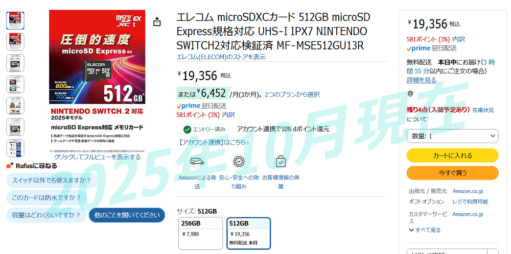 Switch 2用のSD Expressカードは任天堂ライセンス商品があり、知名度からそちらを選ぶのが一番無難ではありますが、ELECOMのメーカー指名買いや、セールで任天堂ライセンス商品よりも安い、等の理由があれば同製品を購入しても問題ありません。