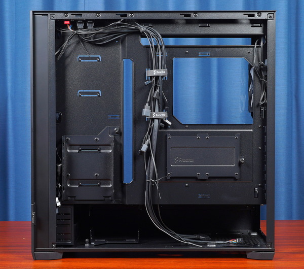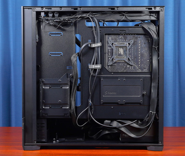 左サイドパネルを取り外すとFractal Design Pop XL Air RGBのマザーボード裏スペースにアクセスできます。Fractal Design Pop XL Air RGBの裏配線スペースの全体は次のようになっています。