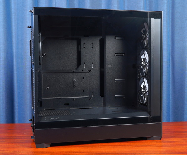 今回レビューしているのは「Fractal Design Pop XL Air RGB Black TG Clear Tint」なので、マザーボード側に内部を一望できる強化ガラス製サイドパネルが搭載されています。