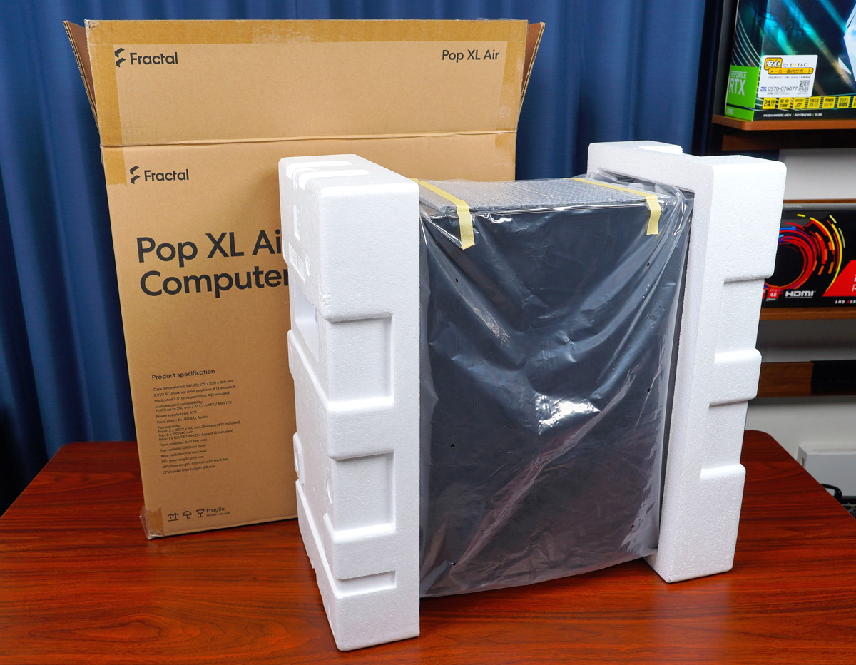 早速パッケージを開封して、Fractal Design Pop XL Air RGBの外観からチェックしていきます。