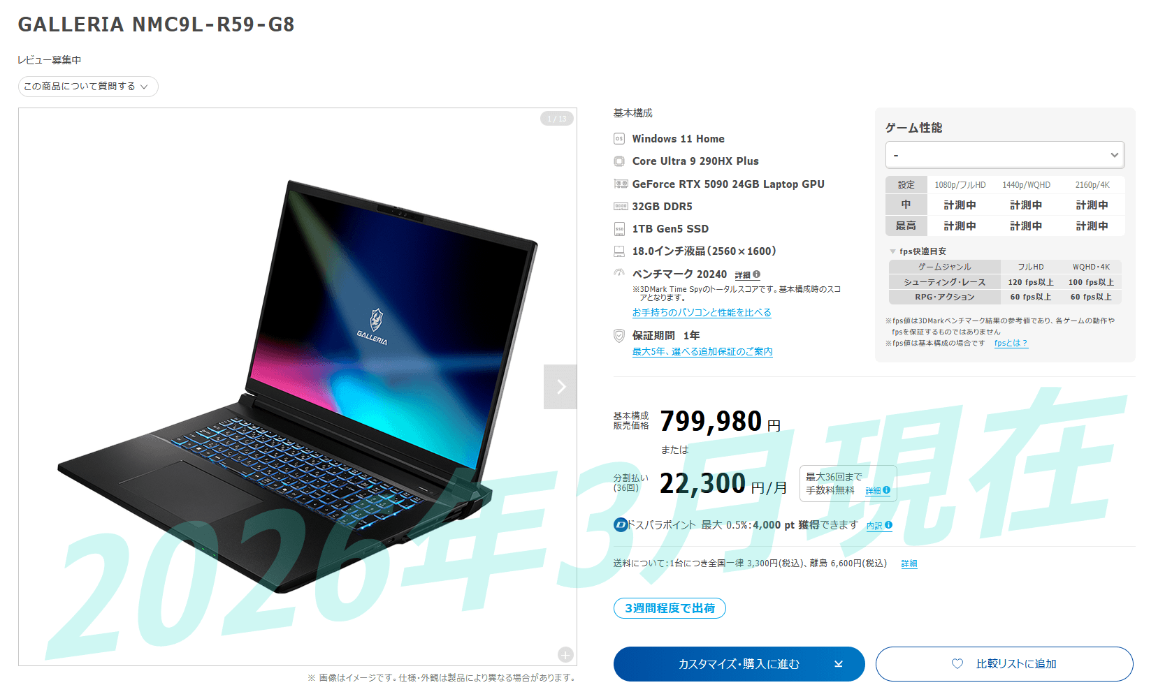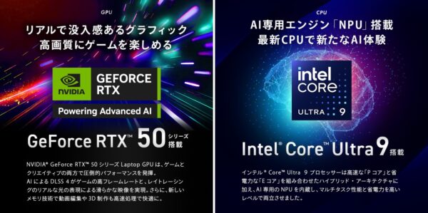 ドスパラのゲーミングBTO PCブランドGALLERIAから、モバイル向け最速ゲーミングGPU GeForce RTX 5090 24GB Laptop GPUとIntelの最新CPUを組み合わせたゲーミングPC「GALLERIA NMC9L-R59-G8」が発売されました。