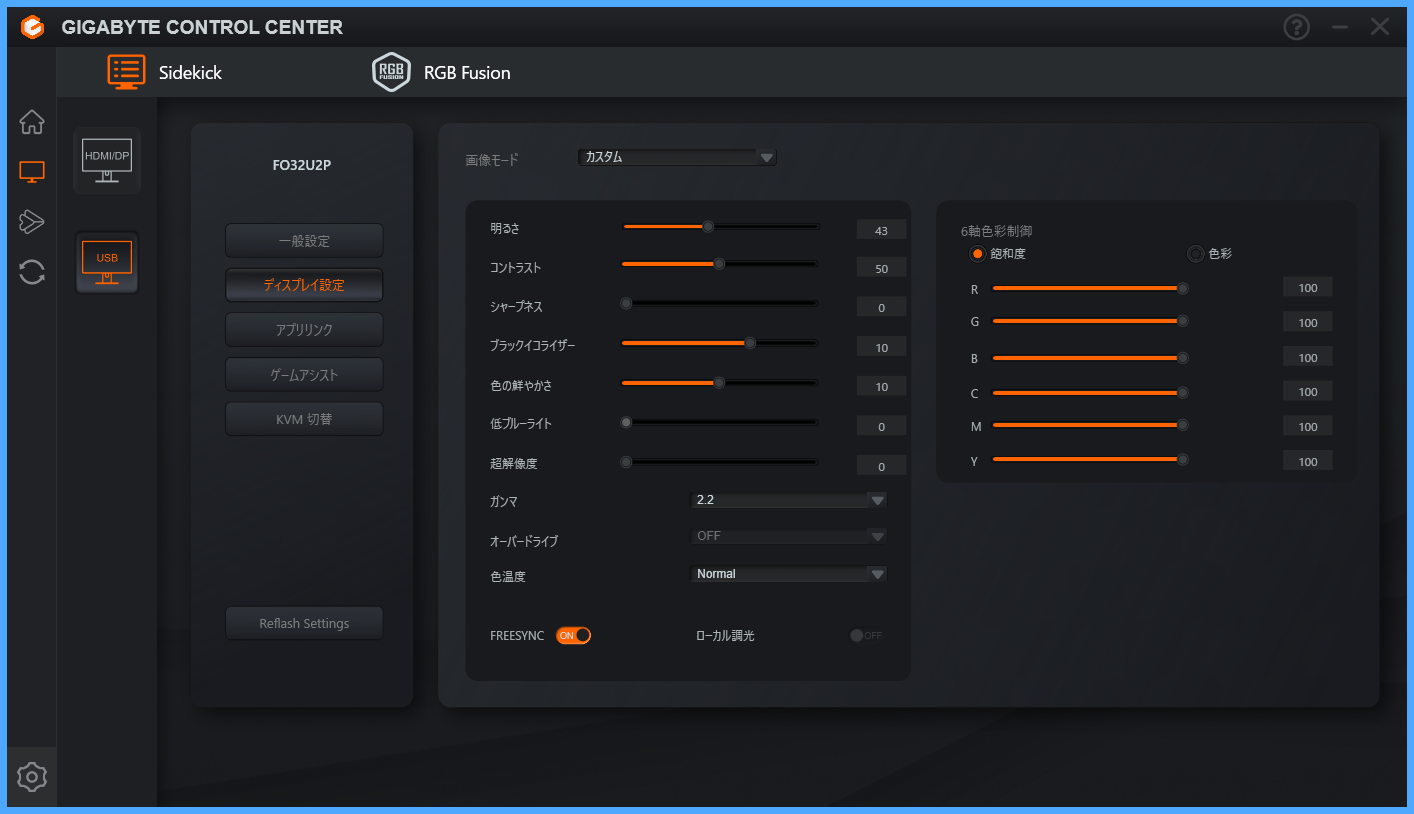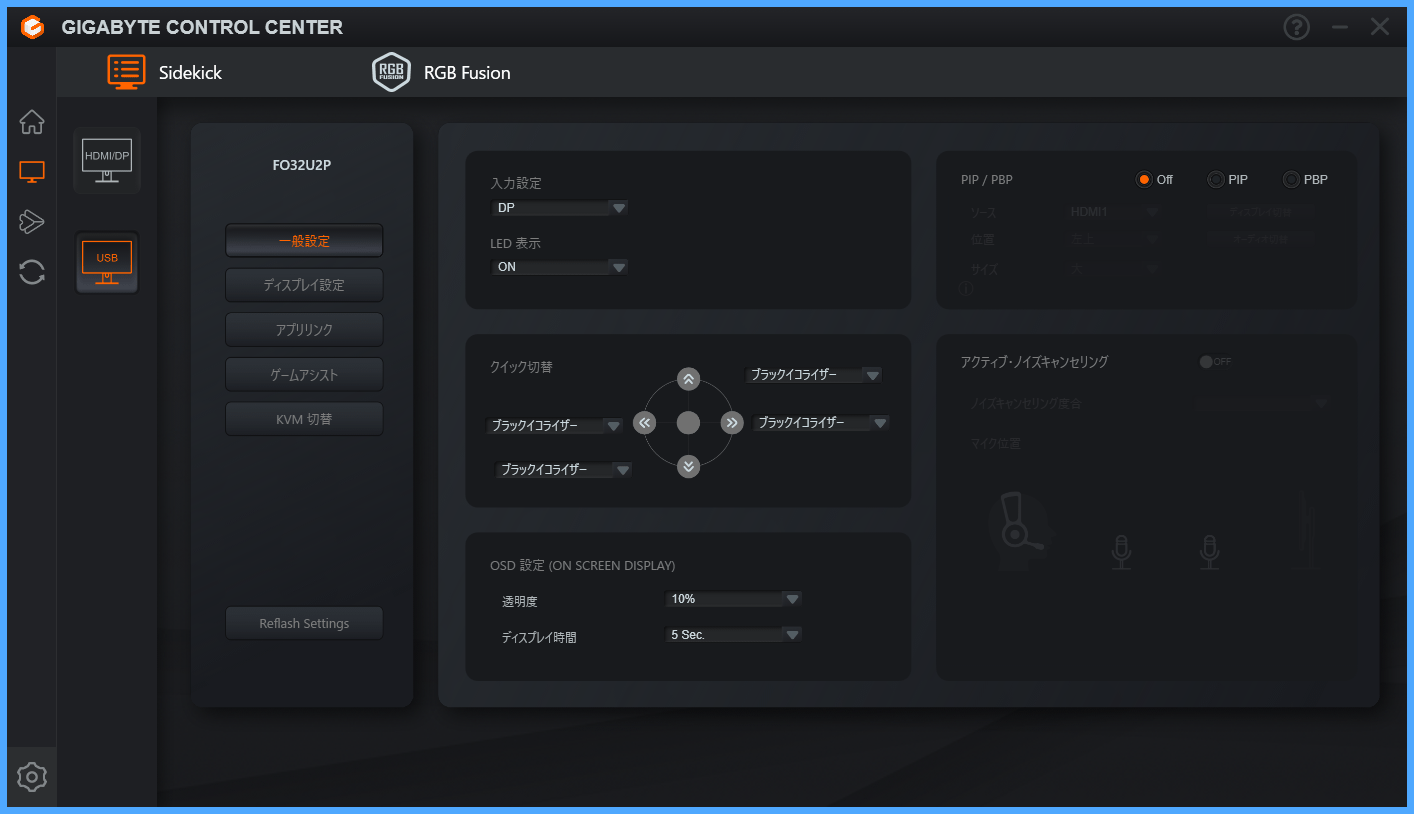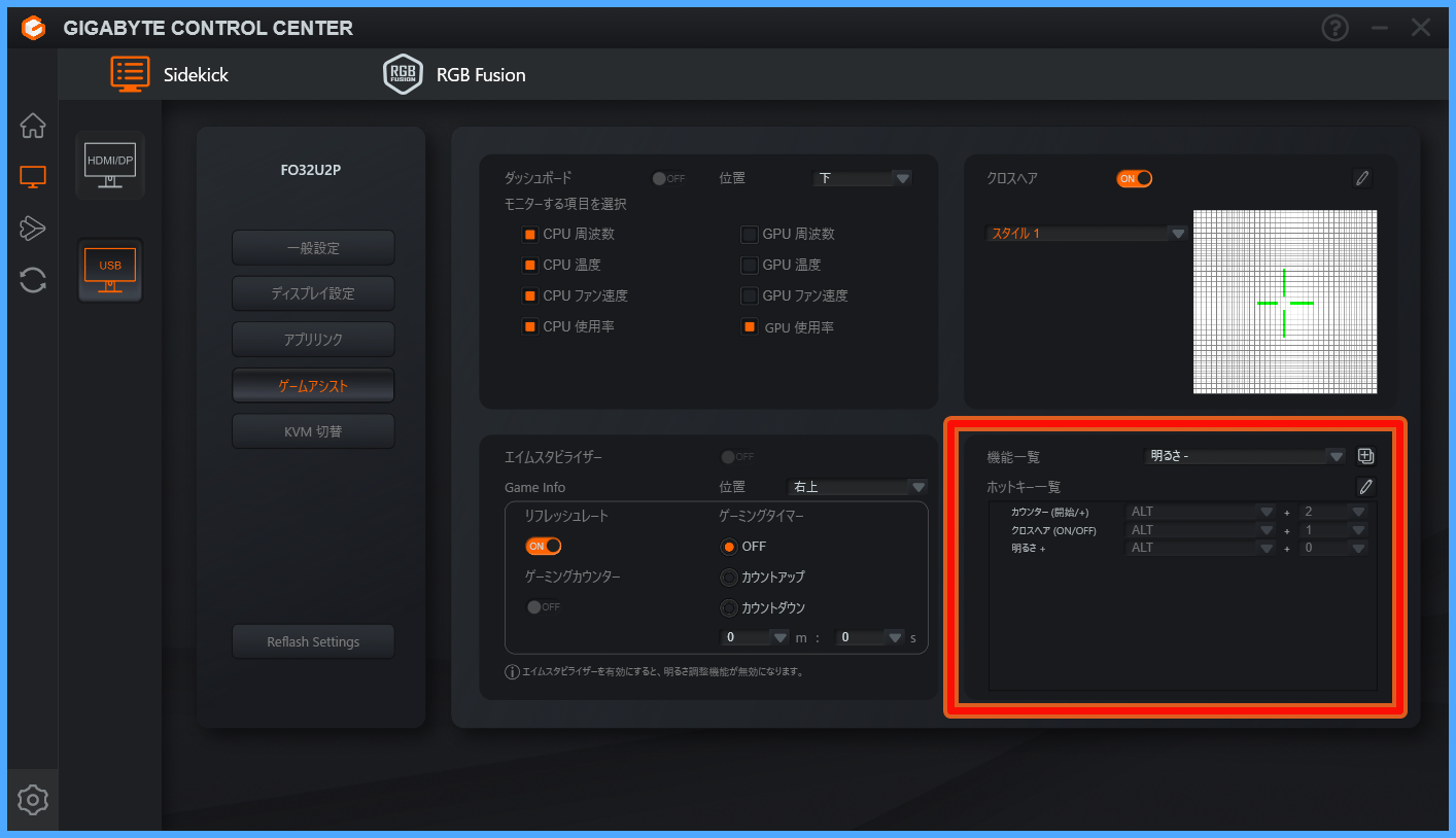 - USB接続によりGIGABYTE Control CenterからOSD設定をフルに操作可能