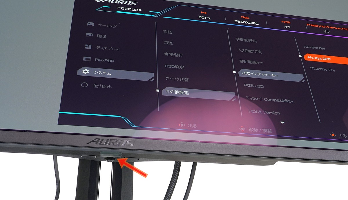 「AORUS FO32U2P / FO32U2」はビルトインスピーカー搭載などオーディオ面で充実している、HDRモードでも輝度や彩度を調整できる、OSDメニューが使い易く、PC連携ソフト対応などが他社製品と比較して魅力です。