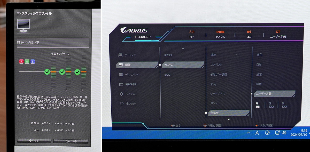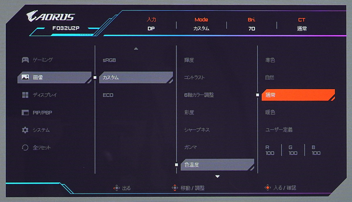 6.AORUS FO32U2Pの色精度・ガンマ・色温度