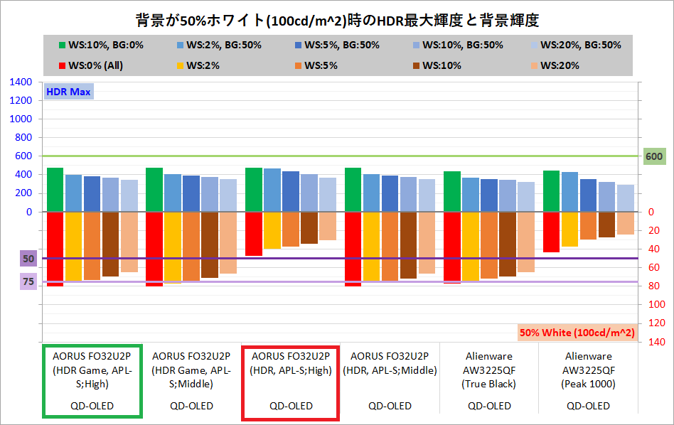 HDR Game/Movie/Vividについては上記のような特徴となっており、APL Stabilize:Highにした時の違いは上で既に紹介済みです。