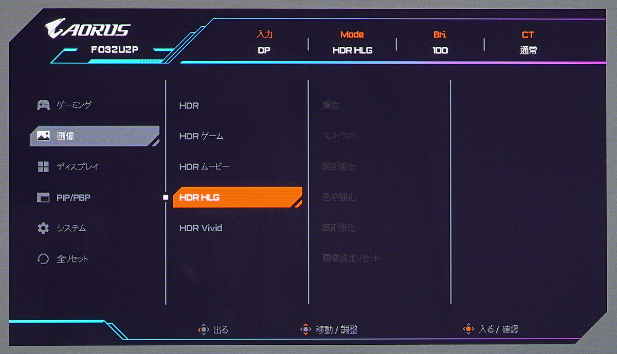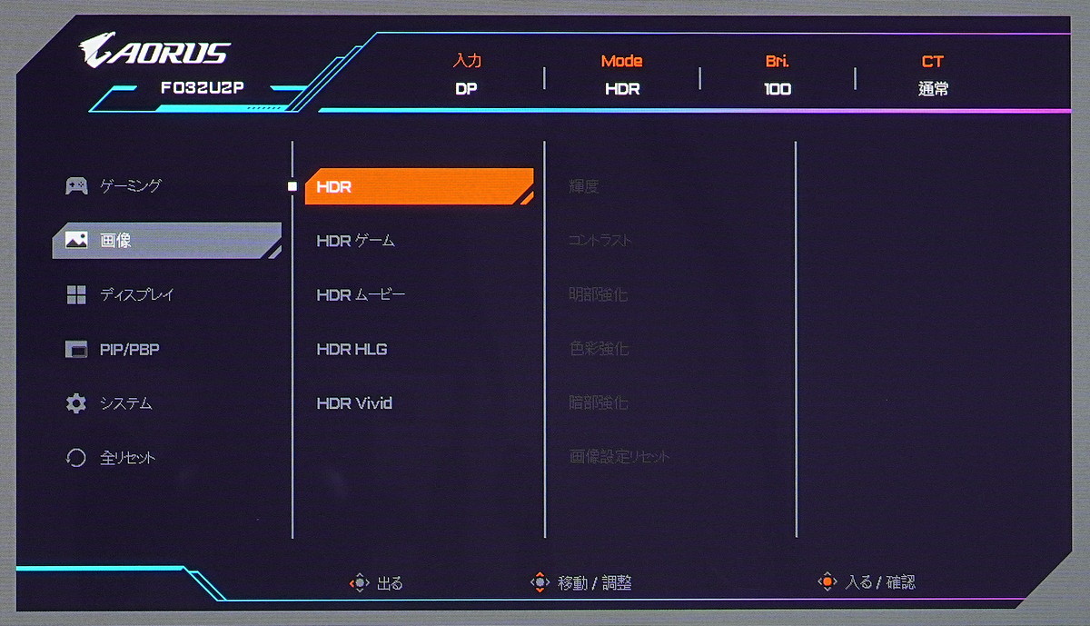 10.AORUS FO32U2PのHDR表示やCSゲーム機対応