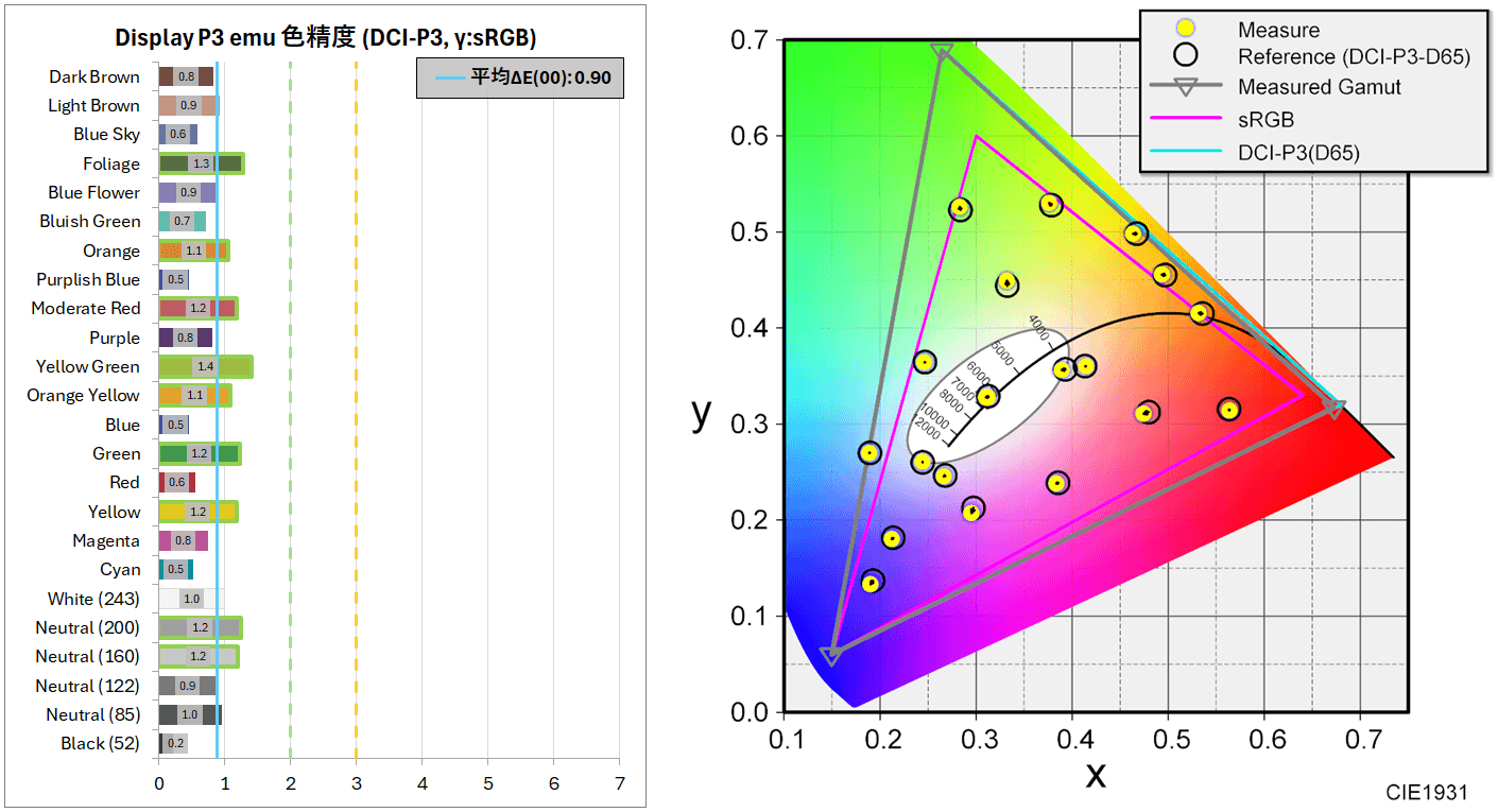続いてHDR表示における色性能(色域、色精度)をチェックするためCIE Diagramを作成しました。