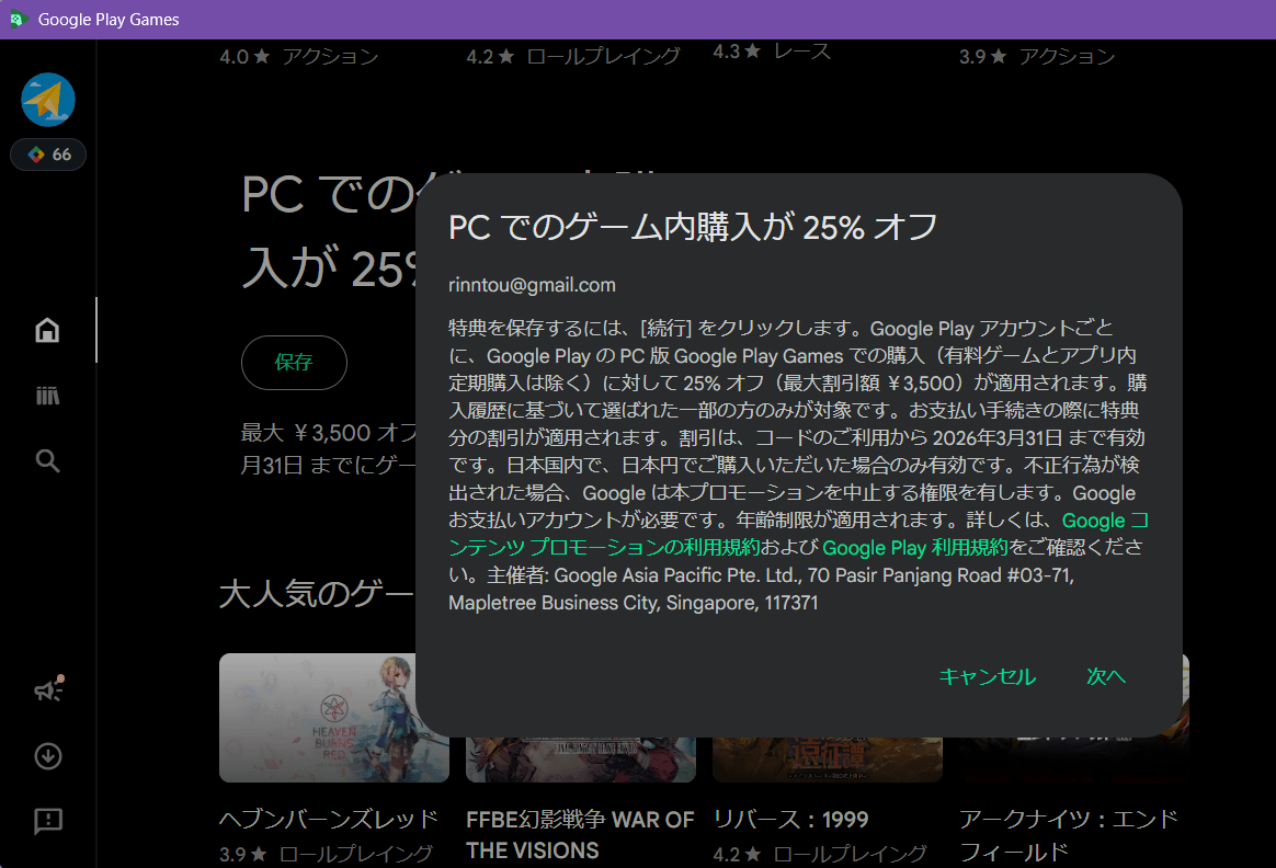 - 【10%】 Google Play Games PC版の10%オフキャンペーン