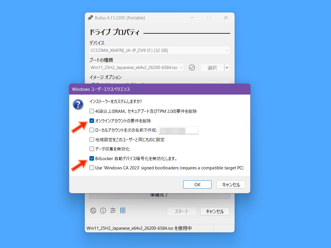 25H2、24H2など最新のWindows 11 OSをオフラインかつローカルアカウントでセットアップできるインストールUSBメディアの作り方を紹介します。
