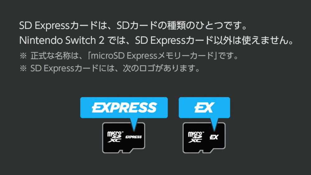 Switch 2用SDはSD Express対応が必須