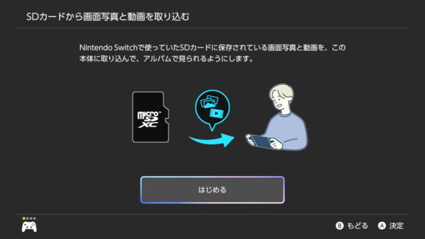 ただし、Nintendo Switch 2は初代Switchで撮影した画像や動画をSDカードから取り込むことができます。