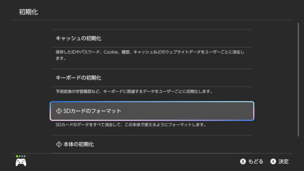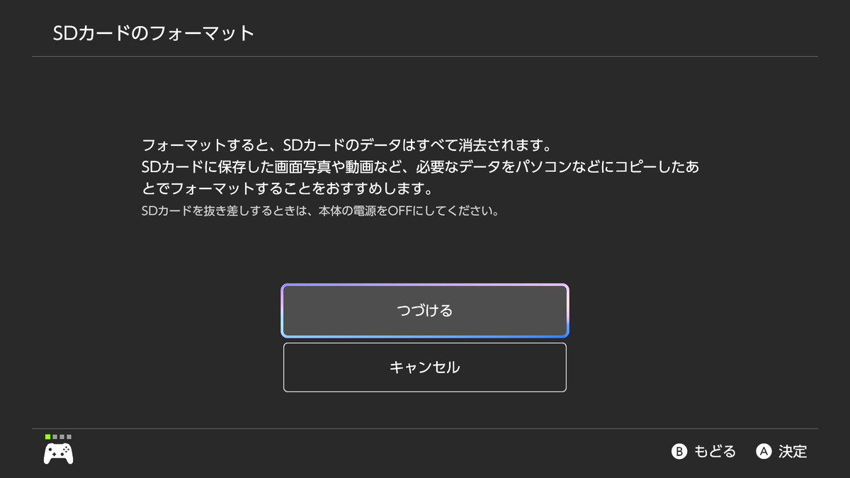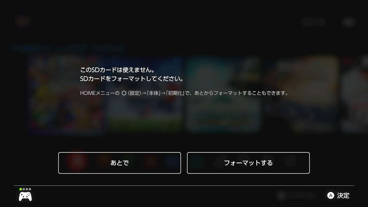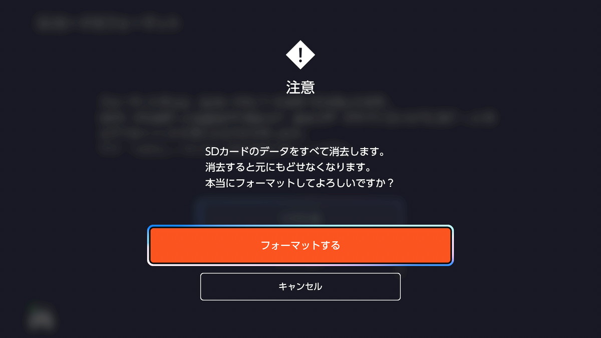 非対応形式でフォーマットされていたり、ボリュームが作成されていない場合は、Switch 2の起動時にフォーマットを行うガイダンスが表示されるので、それに従ってフォーマットすればOKです。