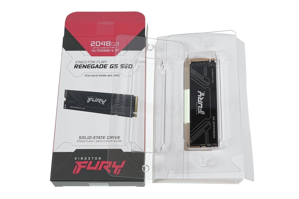 最初に「Kingston FURY Renegade G5 SSD」の外観や実装を簡単にチェックしておきます。