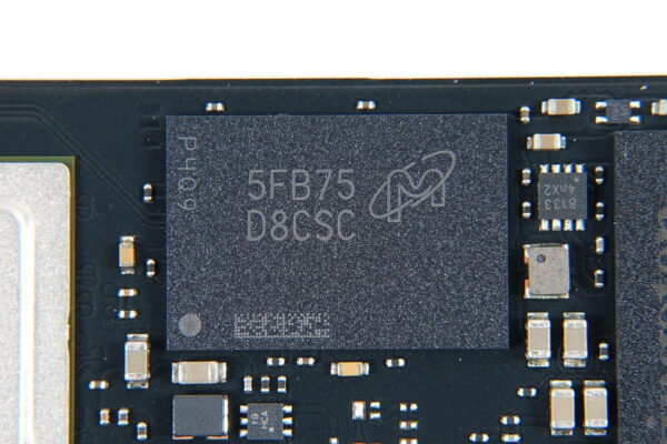 データ保存領域となるNANDメモリについても公式情報では”3D TLC”とだけ記載されていますが、KIOXIA/SanDisk製メモリの最新世代である218層TLC型3D NAND”BiCS8”(Kingston FP01T08UCT1-65)が採用されています。