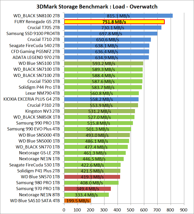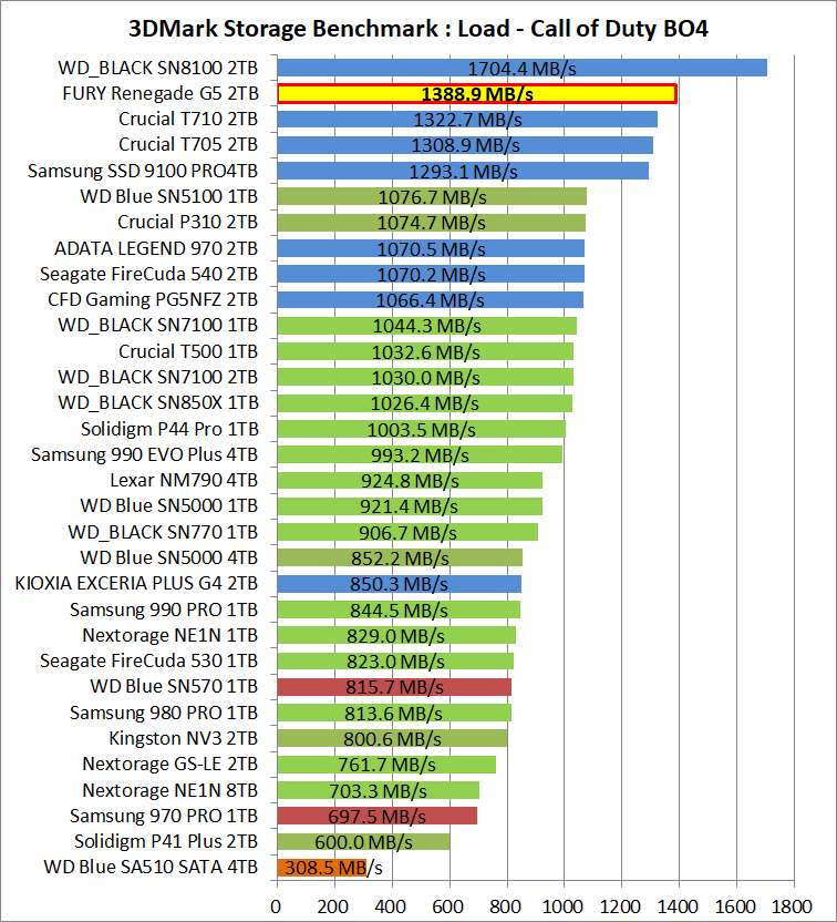 3DMark Storage Benchmarkの総合スコアには、プレイデータのセーブ、PCゲームのインストール/移動など実用面で優先度が低いテストの結果も含まれるので、ここからはPCゲーム用ストレージとして優先度の高い個別テストを抜粋して見ていきます。