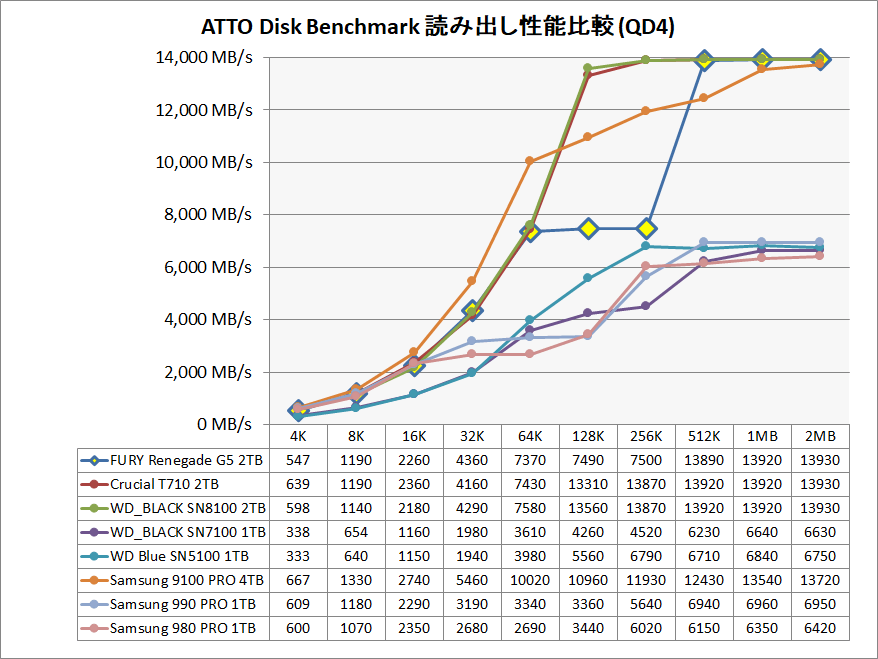 連続読出 | 14,200 MB/s | 14,700 MB/s | 14,800 MB/s |