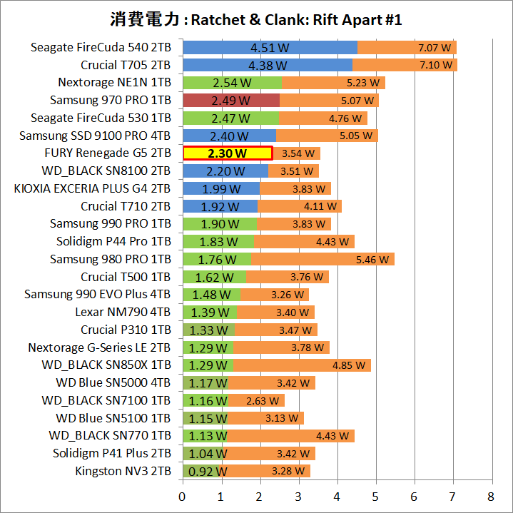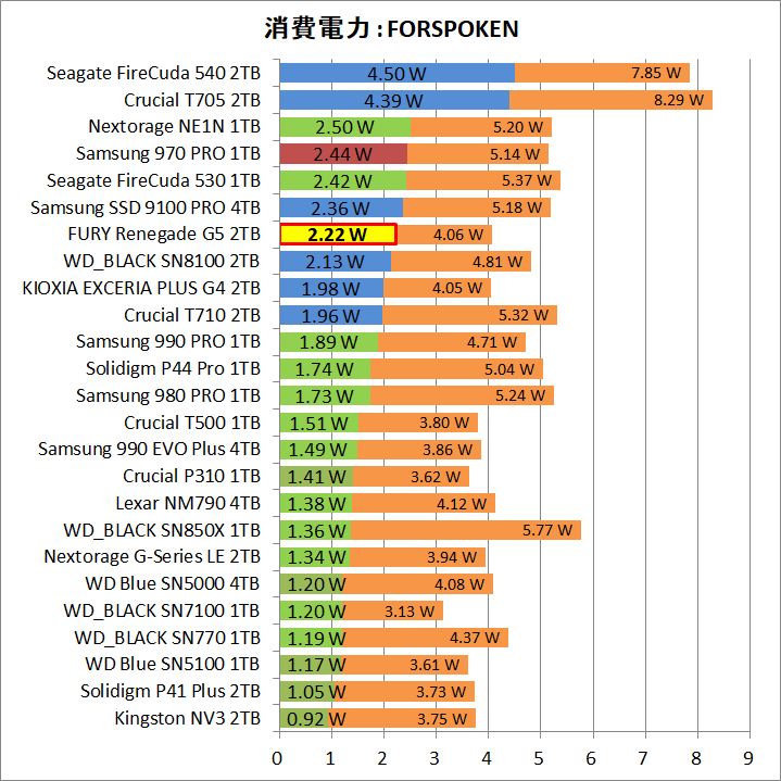 - 消費電力はPCIE4.0 SSDに比べてまだ高い