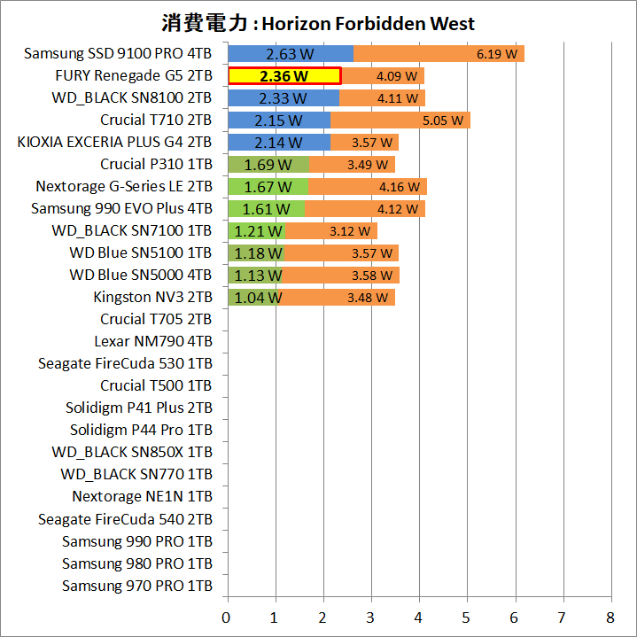 - PCIE5.0の理想的な連続性能ながら6W台の消費電力