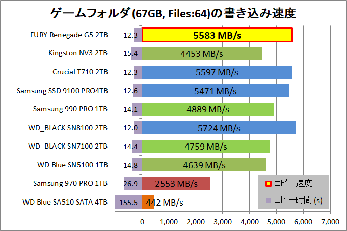 「Kingston FURY Renegade G5 SSD 2TB」でファイル数の多いゲームフォルダのコピー速度を検証しました。