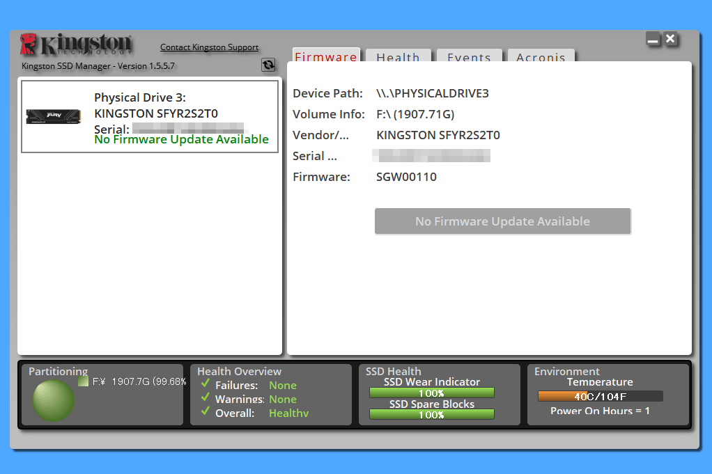 最後にDRAMキャッシュについて、Kingston製SSDではロットや容量モデルによって変わる傾向があります。
