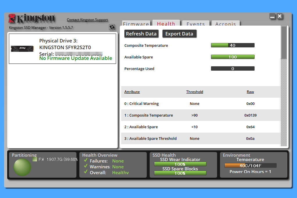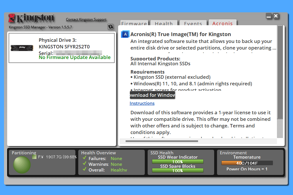 Kingston FURY Renegade G5 SSD の保証条件 | |||