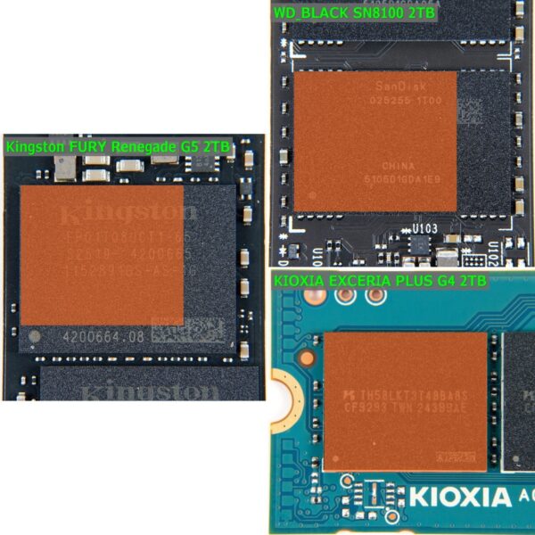KIOXIA/SanDisk製3D NAND BiCS8にはKIOXIA製SSDとSanDisk(WD)製SSDに使用されている2種類のパッケージが確認されていますが、「Kingston FURY Renegade G5 SSD」のメモリパッケージはその2つよりも大きく、独自カスタム品のようです。
