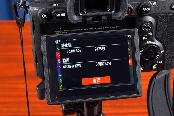 静止画についてもSony α1の50メガピクセルJPG画像を9000枚以上、低圧縮RAW同時保存でも3000枚近くを撮影可能です。
