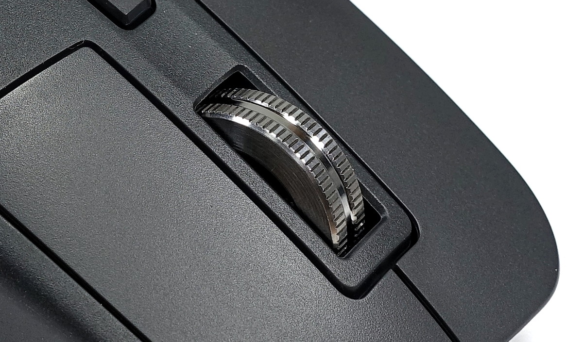 摩擦でコリコリとした抵抗感を生んでいるMX Master 2Sに比べると「MX Master 3」はスクロール時の触感フィードバックが薄いですが、指先で1つ、2つとスクロールしたことを正しく認識できる程度の触感はあるので、慣れれば特に問題はないと思います。