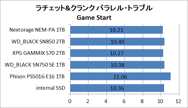 ラチェット&クランク パラレル・トラブルについて、『ロードから特定のセーブデータを選択し、プレイ可能になるまで』の時間を比較した結果が次のようになっています。