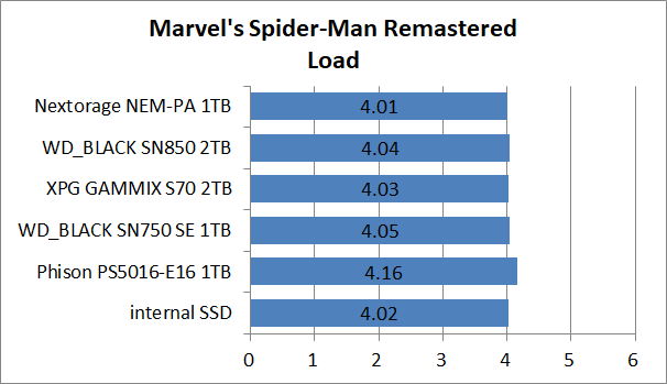 Marvel’s Spider-Man Remasteredについて、『ロードから特定のセーブデータを選択し、プレイ可能になるまで』の時間を比較した結果が次のようになっています。
