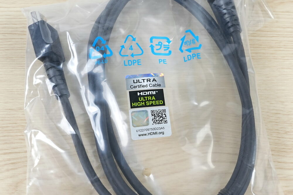 ケーブル径 4.5mmと細くて取り回しが良く、当サイトの検証含め、筆者も個人的に使用しており、おすすめのケーブルです。HDMI2.1の正常動作を証明するUltra High Speed HDMIケーブル認証も取得しているので、安心して使用できます。