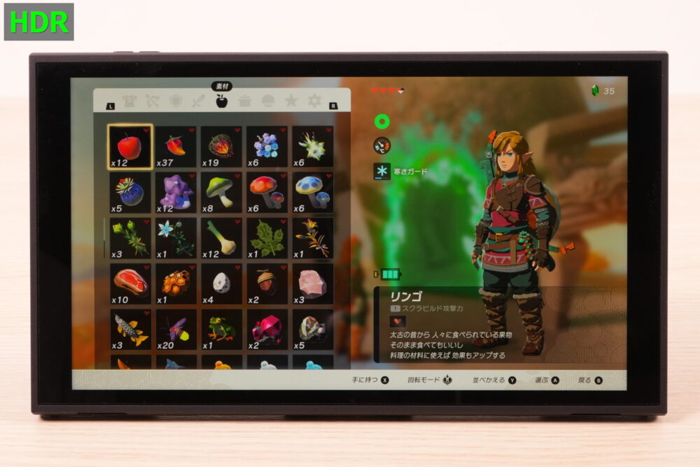 応答速度の遅さは少々想定外でしたが、高性能になったとはいえSwitch 2程度の性能に120Hzハイリフレッシュレートは正直求めていないので(何なら未だに30FPSの最新ゲームも…)、SDRからの高画質化をちゃんと体感できるHDR表示が可能だったという1点で個人的には及第点です。