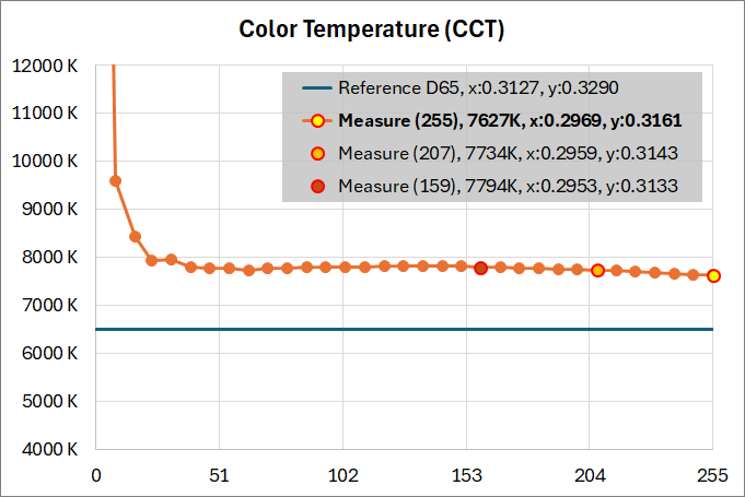 - 日本人受けしやすい7600K程度の寒色寄りな色温度