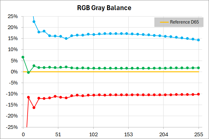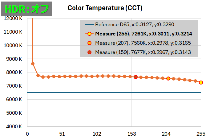 HDR対応のPCゲーミングモニタの多くはHDR規格通りにD65と呼ばれる暖色をホワイトポイントにして色校正されています。