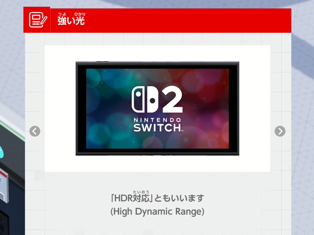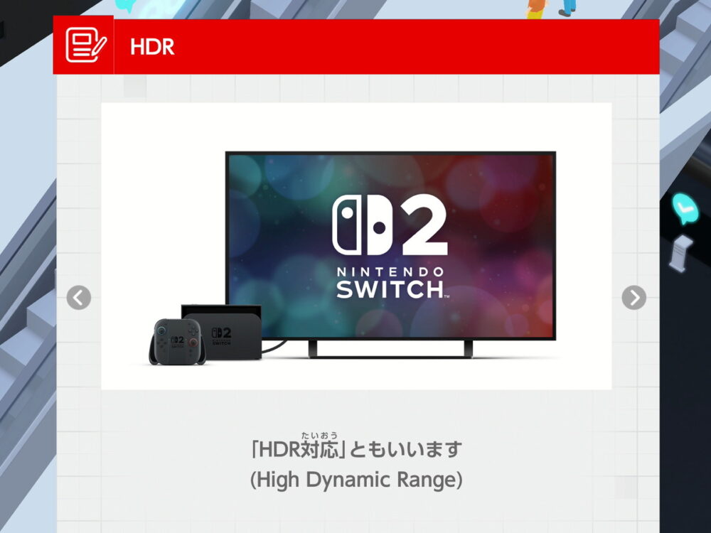 「Nintendo Switch 2」の付属ディスプレイはHDR(ハイダイナミックレンジ)に対応しています。