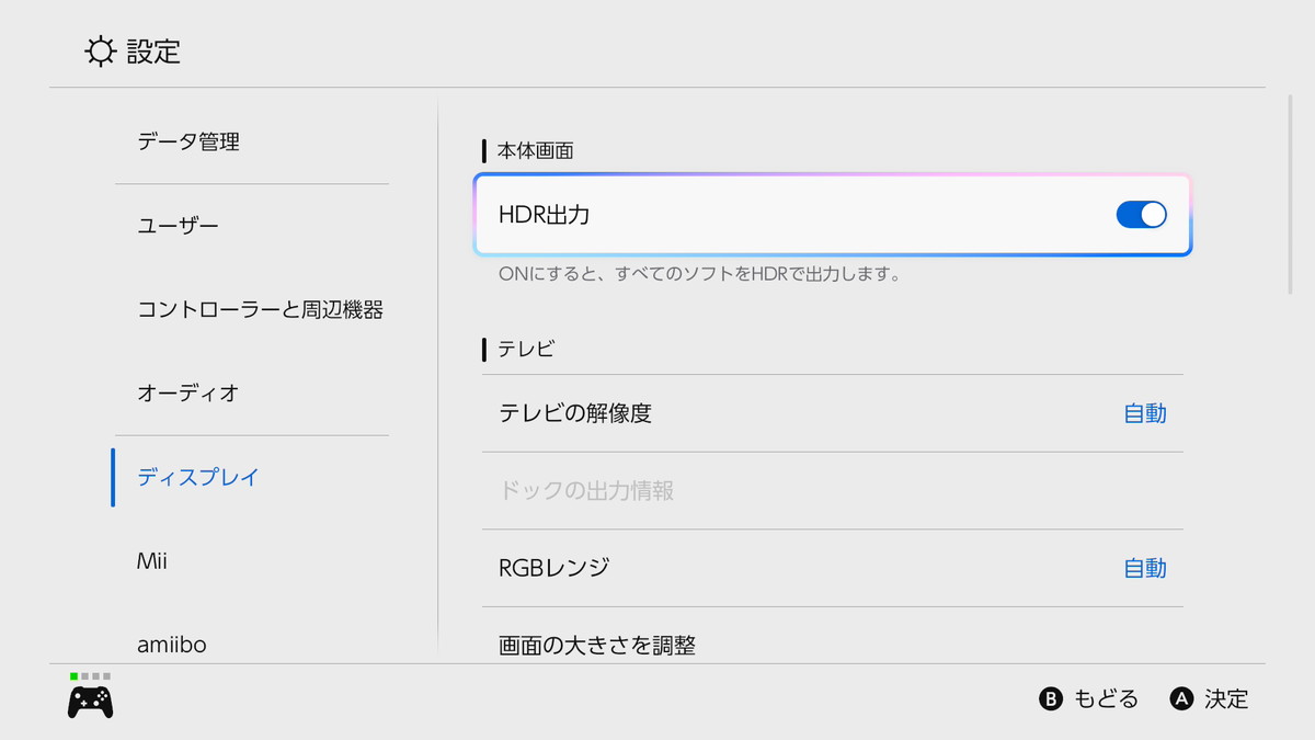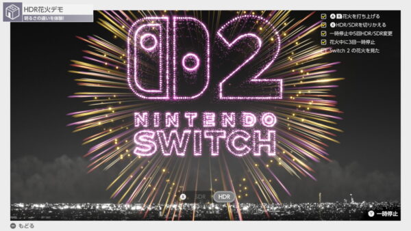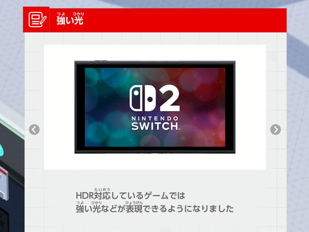 HDRペーパーホワイトについては、Windows設定や一部ゲーム内のHDR明るさ設定に採用されていましたが、ゲーム機というエコシステムにちゃんと扱いやすいHDR明るさ調整機能を組み込んでくれた、これだけでSwitch 2を手放しに褒めちぎりたいです。