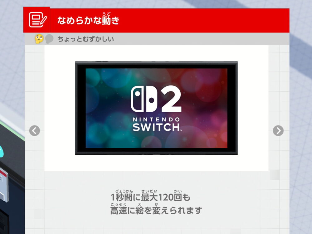 120Hzリフレッシュレート、HDR、VRRなど本体付属ディスプレイの最新機能については『Nintendo Switch 2 のひみつ展』のデモゲームで実際に体験できます。