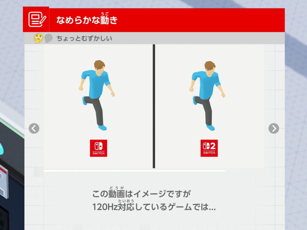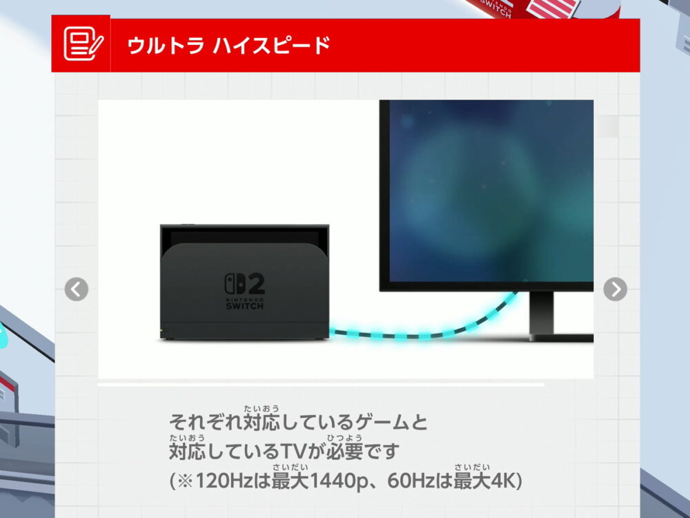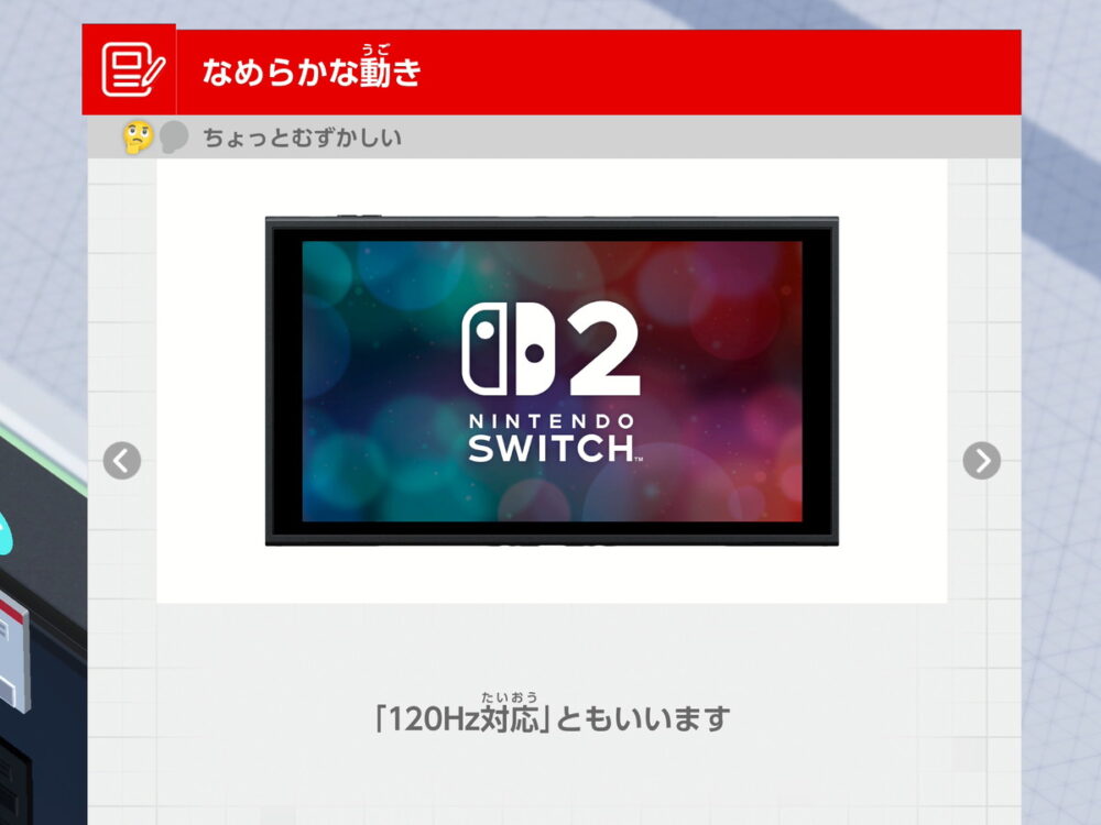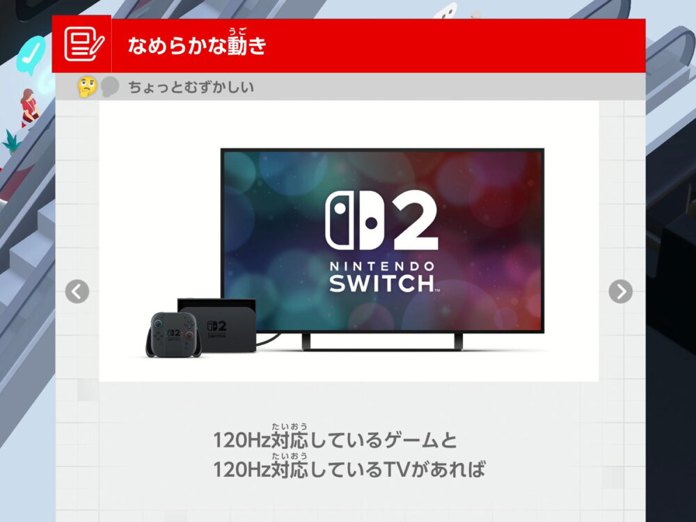 「Nintendo Switch 2」の付属ディスプレイは120Hzの高速リフレッシュレートに対応しています。