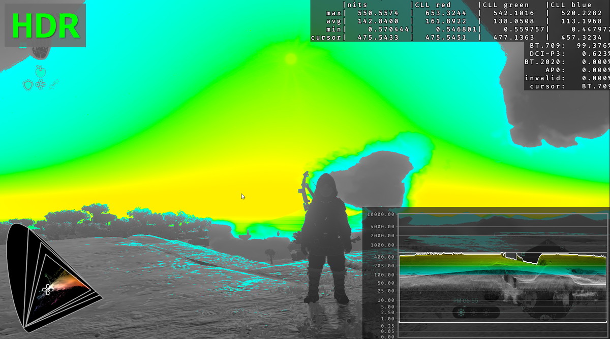 ただし本体付属ディスプレイの性能がDCI-P3ピッタリだからか、HDRの規格標準色域のRec.2020ではなくDCI-P3の範囲内に制限されている感じでした。