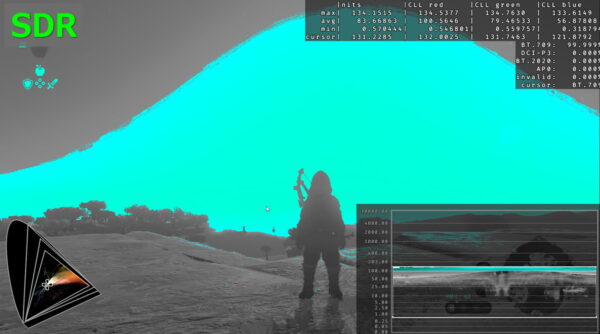 これまではSDR白色を基準にしてモニタ側OSD設定で輝度を調整していましたが、コードバリューに対して輝度絶対値が1:1対応しているHDR表示の運用においては、出力側で調整する形が将来的にスタンダードになるはず、というか規格設定的に正しいはずです。