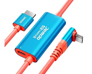 JEMDO製HDMIケーブル型ドックの形状は、USB PD給電を受ける中央ハブからPC/ゲーム機に接続するためのUSB Type-Cケーブルとモニターに接続するためのHDMIケーブルが伸びています。Type-CからHDMIまでケーブルの長さは約2mです。