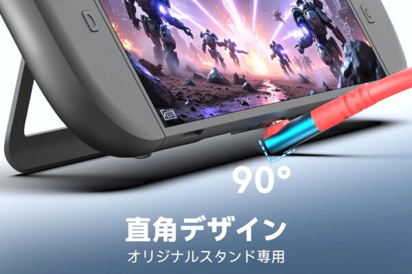 ちなみにL字型コネクタなので、スマホスタンドなしでもNintendo Switch 2本体スタンドだけで自立させることも可能です。製品公式でもそのような置き方ができるとアピールされています。