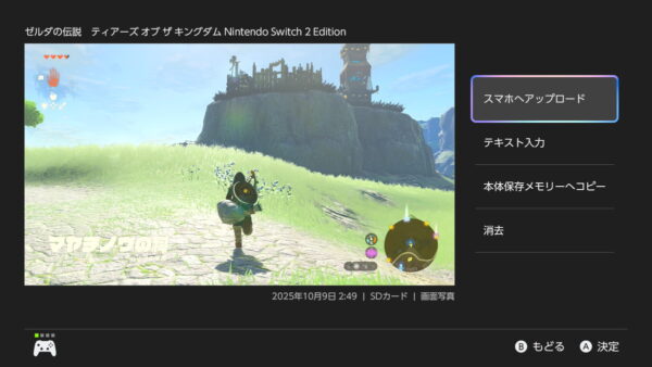 Nintendo Switch 2は初代Switchで撮影した画像や動画をSDカードから取り込むことができます。