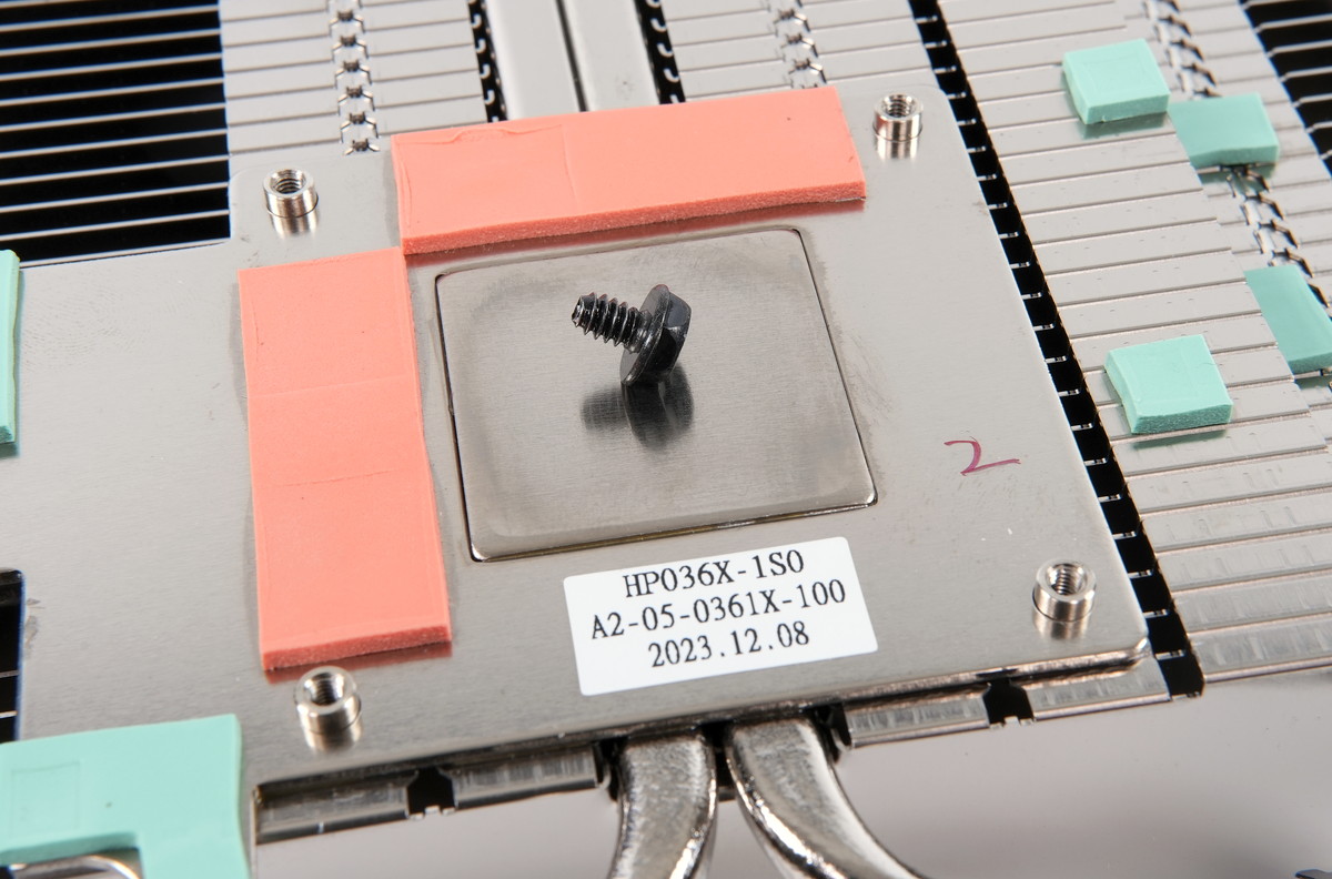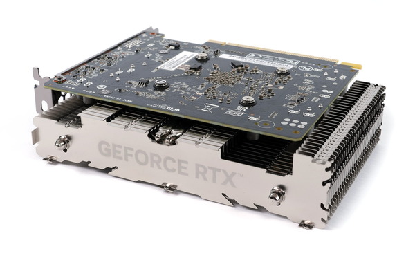 GPUコア周辺のVRAMチップはヒートシンクにろう付けされた金属製プレートとサーマルパッドを介してヒートシンク本体で直接冷却します。