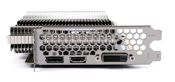 2スロットのスペースに収まる限界で分厚いアルミ製放熱フィンが展開されています。