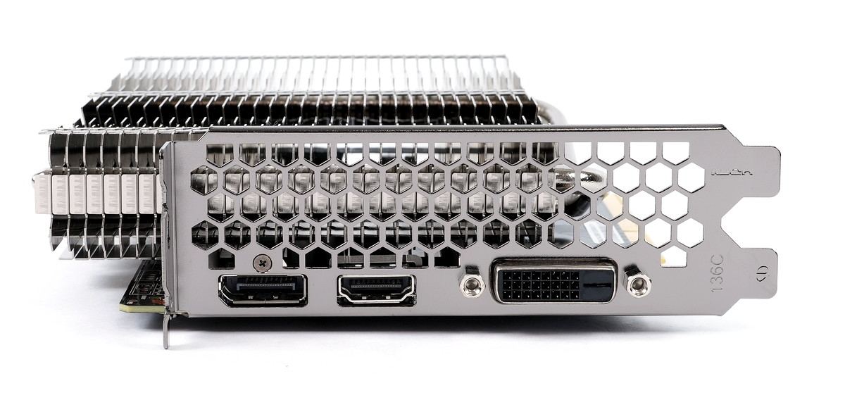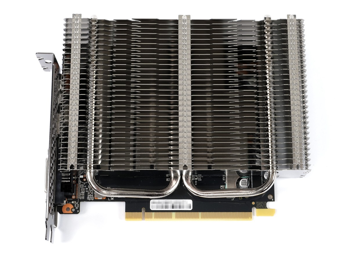 一般的なGPUクーラーヒートシンクと比較してファンレスでも十分な放熱ができるように放熱フィンのピッチは広くなっています。